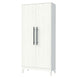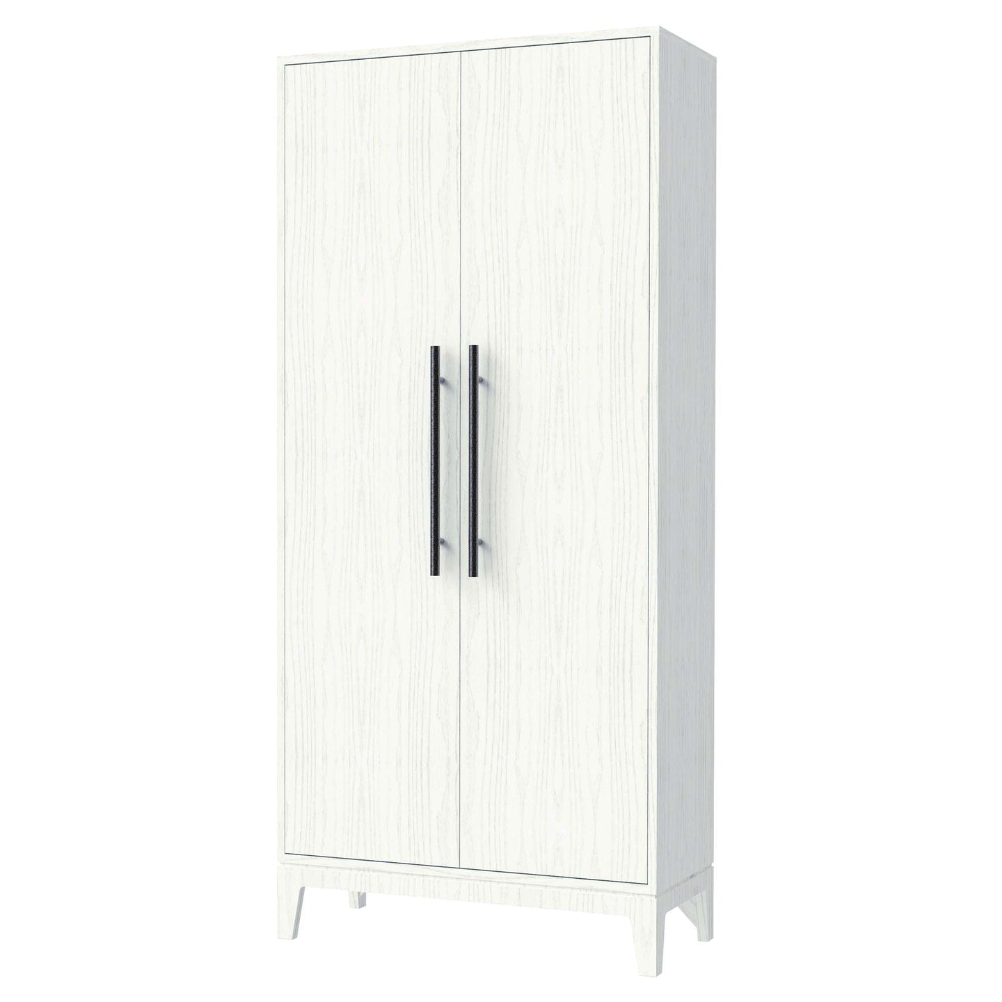 Equipped with three adjustable wood-finished shelves and one fixed shelf, the Millie II offers versatile storage options to suit your organizational needs. The white finished shelves and back panel provide a clean and airy aesthetic, while two full-height wood-finished doors offer easy access to your belongings.
