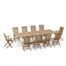 The choice of simplicity yet elegant. Enjoy the rest of the evening with friends and family while sitting on the Classic Folding Chair with a Valencia rectangular double extension table. This set fits for 10-14 people comfortably. The table and chairs are all constructed using mortise and tenon construction for strength and durability. The outdoor furniture is made of premium quality plantation teak from Indonesia where the best teak tree grows. Add all-weather cushions from Sunbrella for extra comfort. This collection is built for generations.