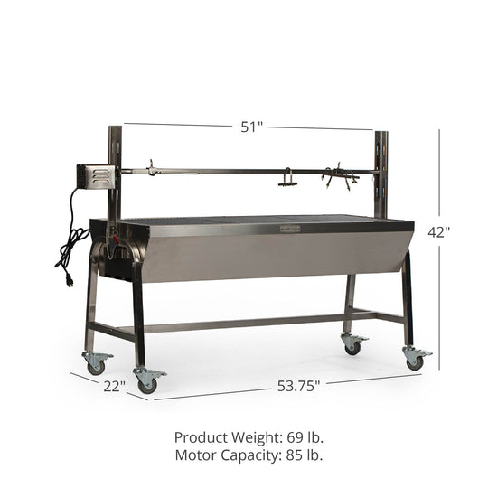 Roast juicy, succulent meats up to 85 LB with this medium game rotisserie. This grill delivers flavor-enhanced food with a perfectly even cook every time. With a 13-Watt electric motor, this rotisserie spins itself at a...Sale price $359.97Regular price $730.00Sale price $359.97Regular price $730.00 -