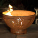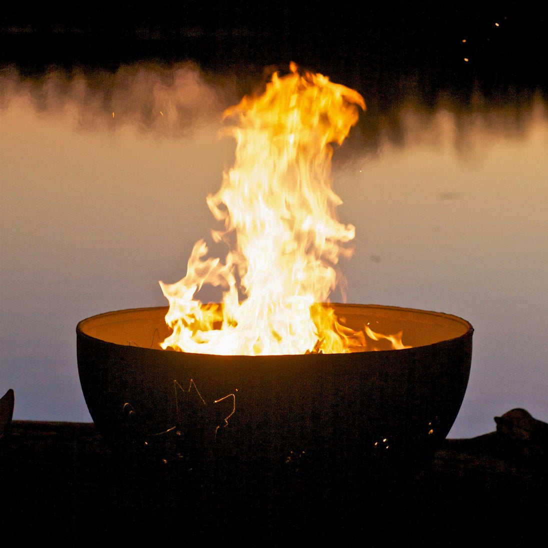 The inner bowl is coated with a high-temperature-resistant coating and includes a 1 ½" diameter rain drain. The outer iron oxide patina is maintenance-free, and the fire pit can be left outside in all weather conditions. Over time, the patina will mature and darken a few shades, then remain permanent forever. A numbered brass plate on the base of the fire pit showcases a unique number, signifying it has been handmade exclusively for you.