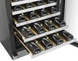 With dual temperature zones, this wine cooler can store up to 41 bottles of red and white wine and is great for someone with a medium-sized collection. The quiet compressor and built-in capability make it perfect for seamlessly blending into any home. A double-pane glass door with anti-UV ray tint protects your collection from light damage and helps to maintain a steady temperature in the unit. It also comes equipped with an activated charcoal filter to absorb any odors that might affect the taste of your wine.