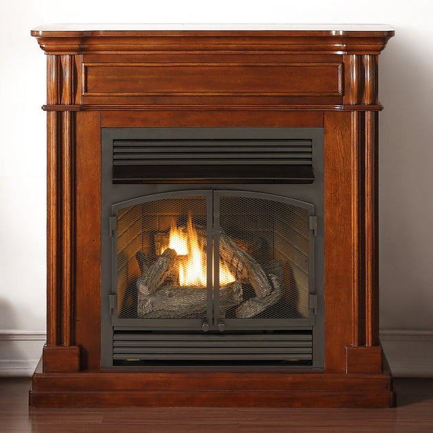 Duluth Forge Dual Fuel Ventless Gas Fireplace With Mantel - 32,000 BTU, T-Stat. Control, Auburn Cherry Finish - Model# DFS-400T-2AC