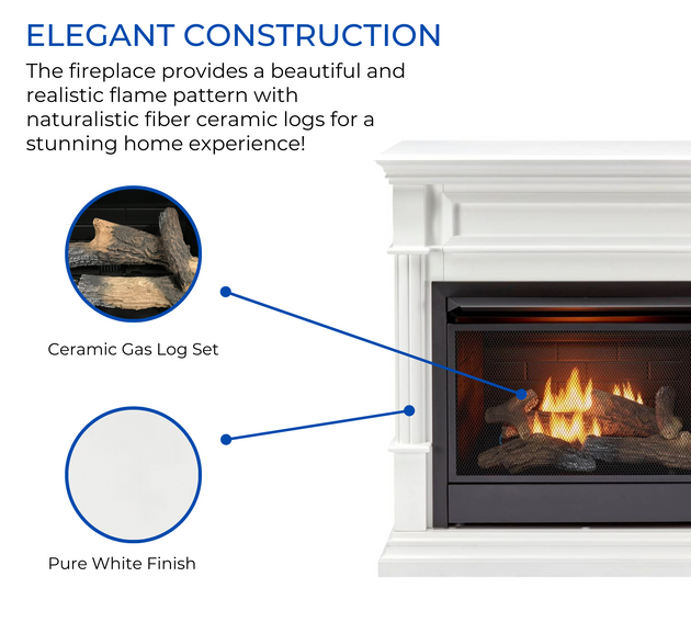 Duluth Forge Dual Fuel Ventless Gas Fireplace With Mantel - 32,000 BTU, T-Stat Control, Antique White Finish - Model# DFS-400T-2AW