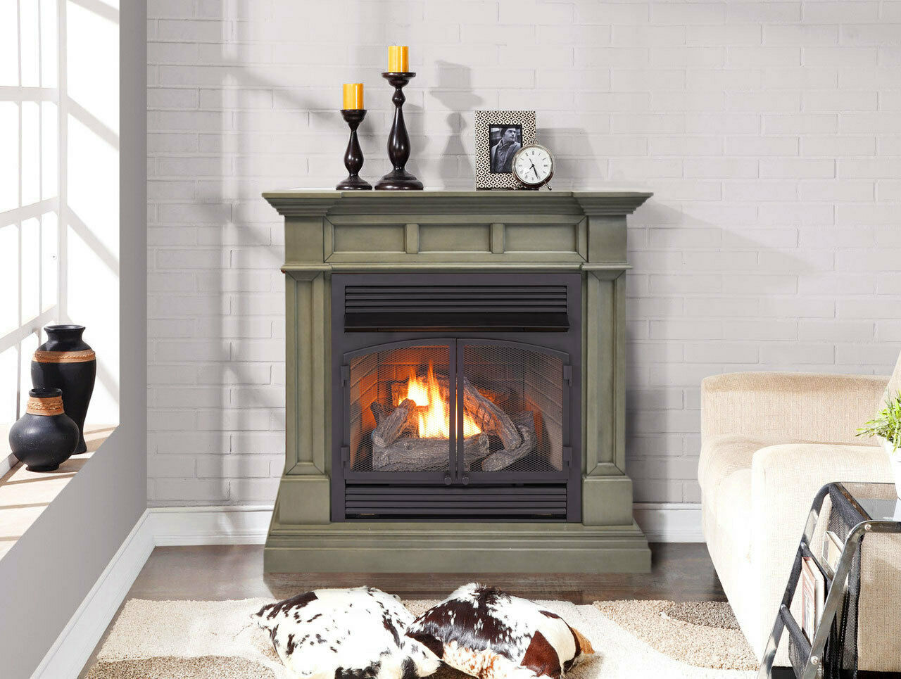 The Duluth Forge Ventless Fireplace features our Furniture Quality fireplace mantel and our Dual Fuel, Vent Free Gas fireplace insert that provides you with heat and beauty. The product is made to produce up to 32,000 BTU of heat, enough to heat 1,500 square feet of living space. The fireplace provides a beautiful and realistic flame pattern with realistic fiber ceramic logs for a stunning home experience. This vent-free fireplace system includes many features like a T-Stat control, Oxygen Depletion Sensor with automatic shut-off, battery assisted piezo ignition, and much more. The fireplace mantel has been carefully designed and created in a slate gray furniture grade finish that accents its quality and excellence.