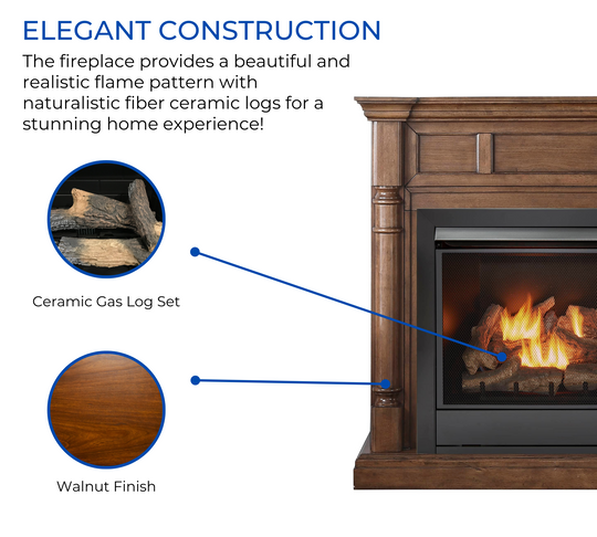 Duluth Forge Full Size Dual Fuel Ventless Gas Fireplace With Mantel - 32,000 BTU, Remote Control, Walnut Finish - Model# FDI32R-M-WN