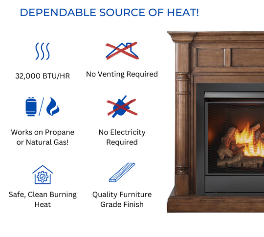 Duluth Forge Dual Fuel Ventless Gas Fireplace With Mantel - 32,000 BTU, T-Stat Control, Autumn Spice Finish - Model# DFS-400T-1AT