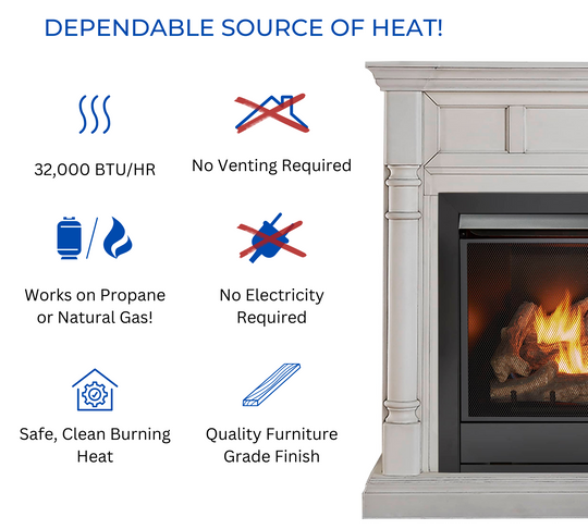 Duluth Forge Dual Fuel Ventless Gas Fireplace With Mantel - 32,000 BTU, T-Stat Control, Antique White Finish - Model# DFS-400T-2AW