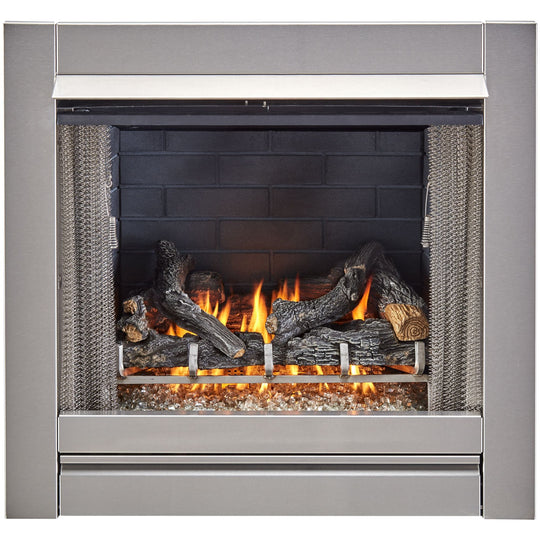 Duluth Forge Ventless Stainless Outdoor Gas Fireplace Insert With Glass Media and Log Set - 24,000 BTU, Manual Control - Model# DF450SS-L