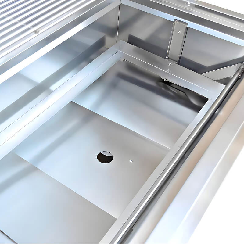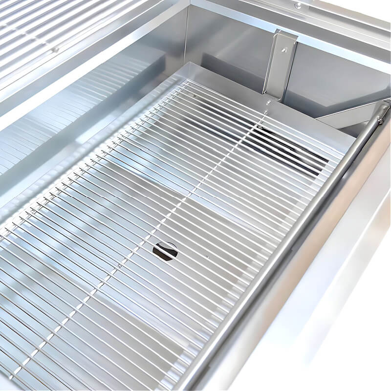 Designed for residential outdoor kitchens, this built-in charcoal grill accommodates lump charcoal or wood as fuel and is engineered for performance, longevity, and easy maintenance.