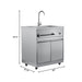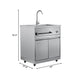 The stainless-steel outdoor sink cabinet, with a spice rack and bottle opener, simplifies meal prep and cleanup.