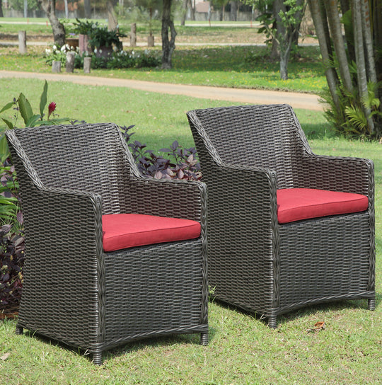 Sea Island Wicker Patio Lounge Chair Set With Red Cushion - Set of 2 - Model# DFWC-1