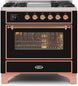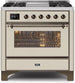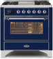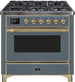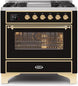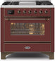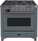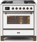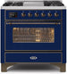 ILVE Majestic 36 Inch Dual Fuel Range Burner Top 6 Burners+Fry Top - UM09FDNS3