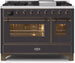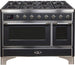 ILVE Majestic 48 Inch Dual Fuel Range Burner Top 8 Burners+Fry Top - UM12FDNS3