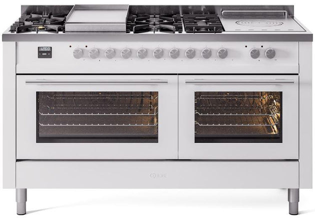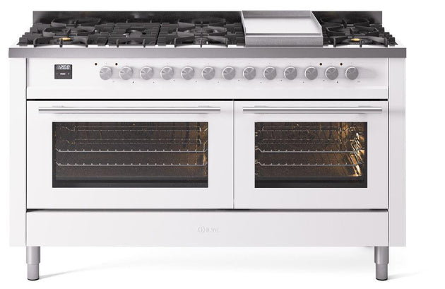 ILVE Professional Plus 60 Inch Dual Fuel Range Burner Top 7 Burners+Fry Top+Coup de Feu - UP60FSWMP
