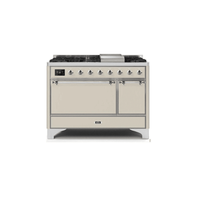 ILVE 48 Inch Majestic II Series Freestanding Dual Fuel Liquid Propane Range with 8 Sealed Brass Non Stick Coated Burners and Griddle - UM12FDQNS3