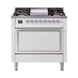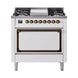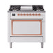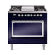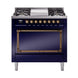 TheILVE Nostalgie II Noblesse 36" Dual Fuel Rangemasterfully blendsclassic Italian aestheticswithprofessional-grade performance. Featuringsix high-powered sealed burners (up to 25,000 BTU), aremovable cast-iron griddle, and a3.5 cu. ft. convection oven, this freestanding range deliversrestaurant-quality cookingwhile serving as a stunning kitchen centerpiece.