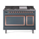 ILVE Nostalgie II Noblesse 48" Dual Fuel Freestanding Range8 Sealed Burners + Griddle with Solid Door (UN48FQNMP)