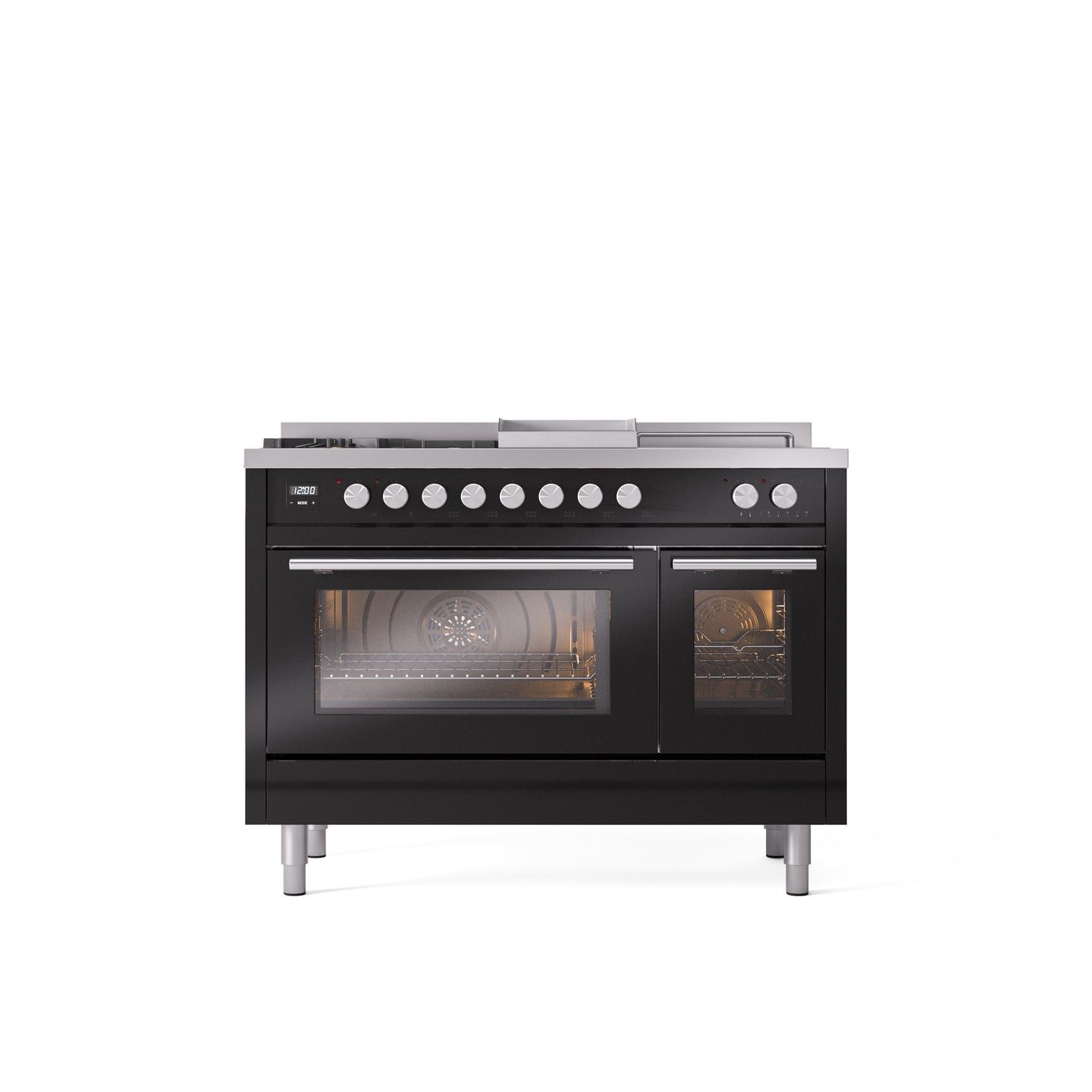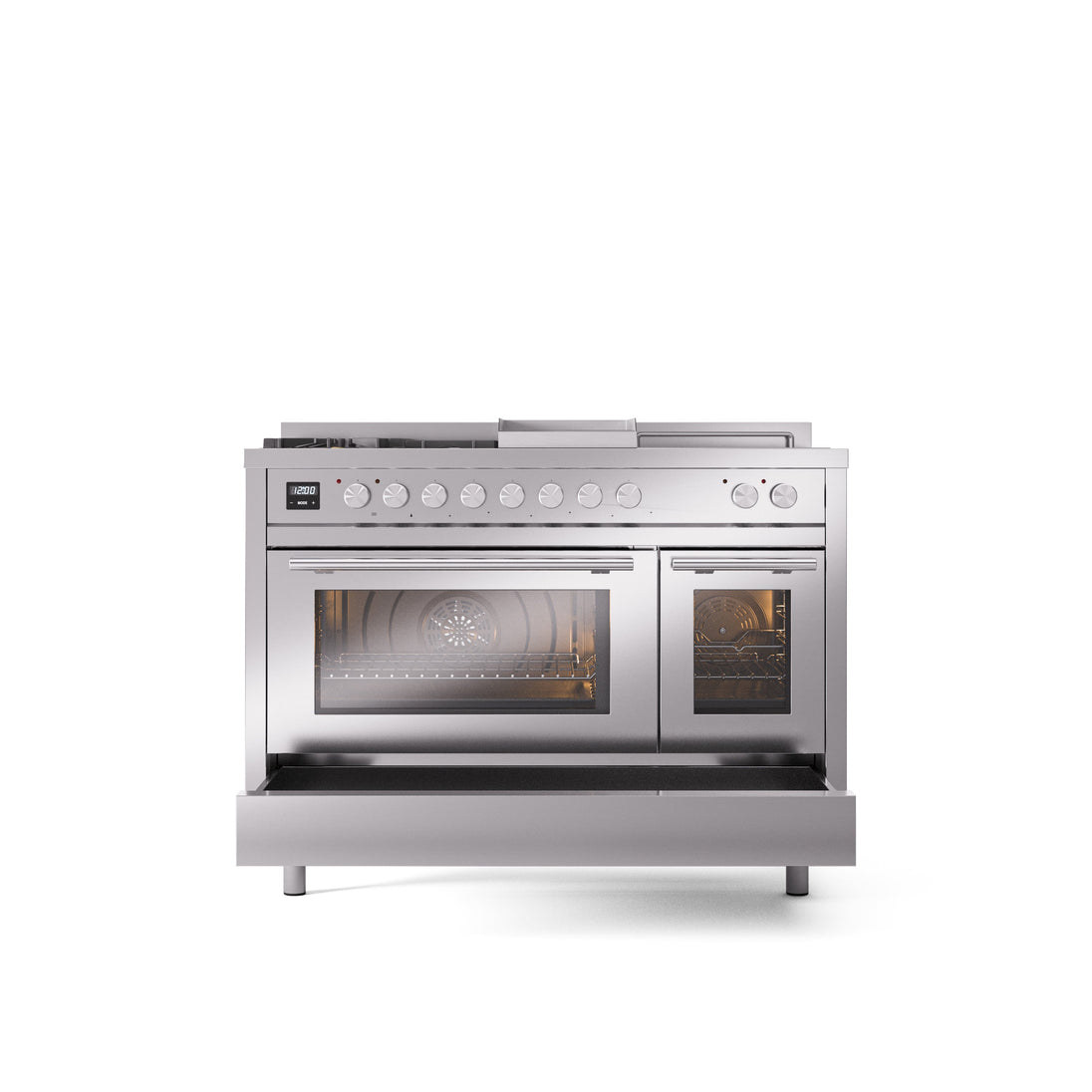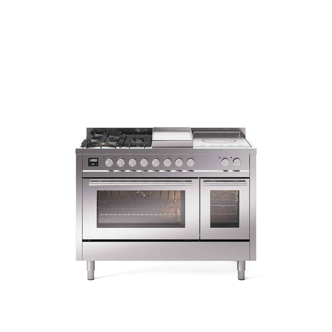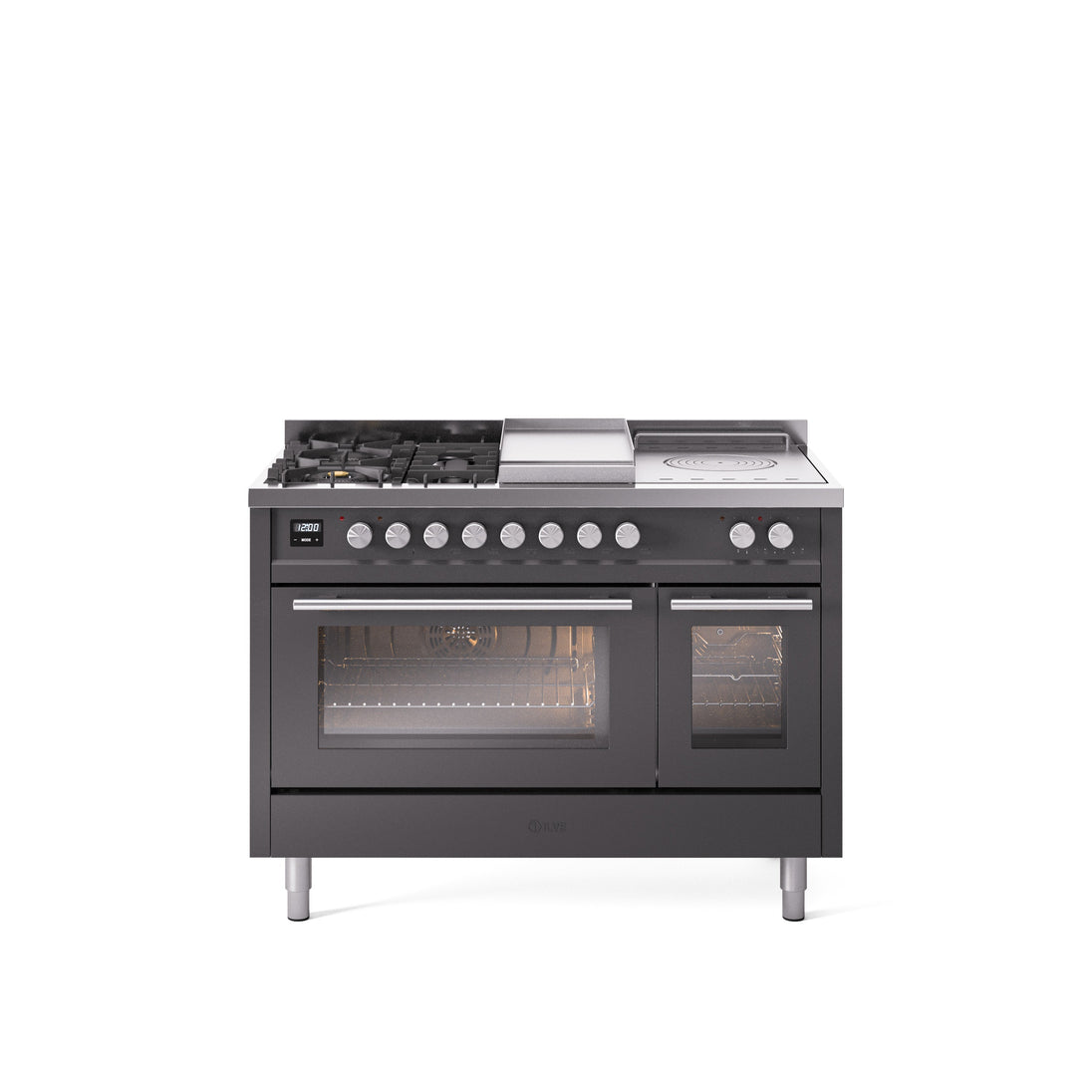 Transform your kitchen into a professional culinary studio with theILVE Professional Plus II 48" Dual Fuel Range. Designed for serious chefs and inspired by commercial kitchens, this freestanding powerhouse combines5 high-performance burners (up to 25,000 BTU), aFrench top griddle, and5.02 cu. ft. dual oven capacityin ahandcrafted AISI 304 stainless steelpackage.