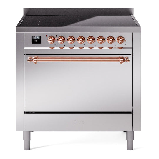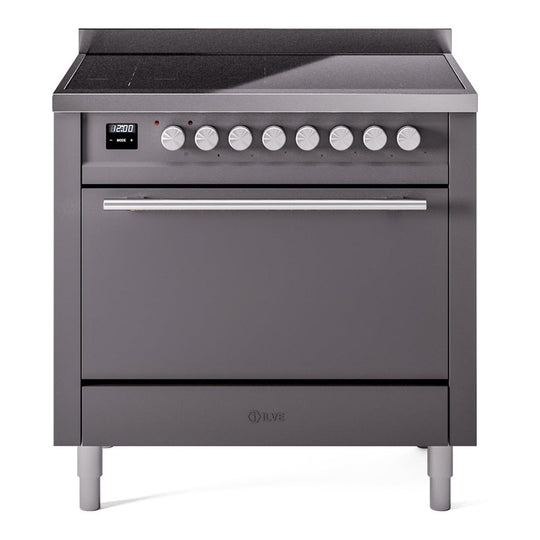 ILVE Professional Plus II 36" Electric Range with 6 Induction Elements Solid Door with Stainless Steel knobs - UPI366QMP