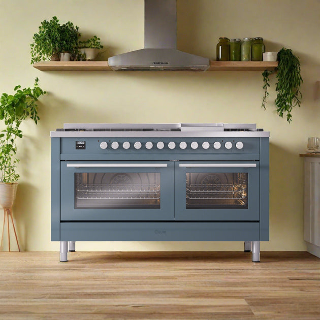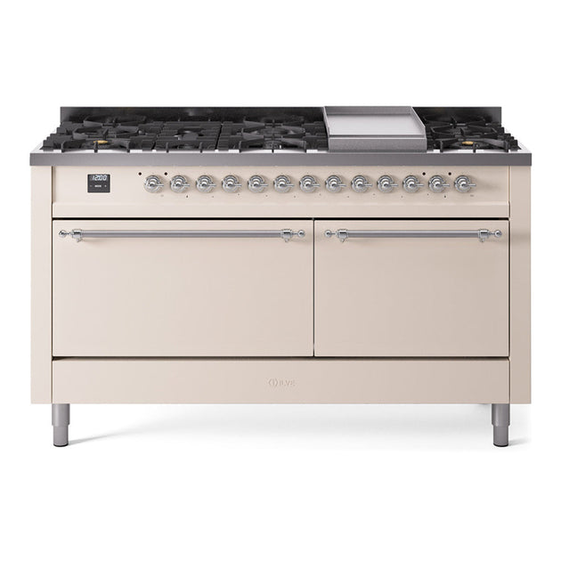 ILVE Nostalgie II 60" Dual Fuel Range with 9 Sealed Burners + Griddle Solid Door - UP60FQNMP