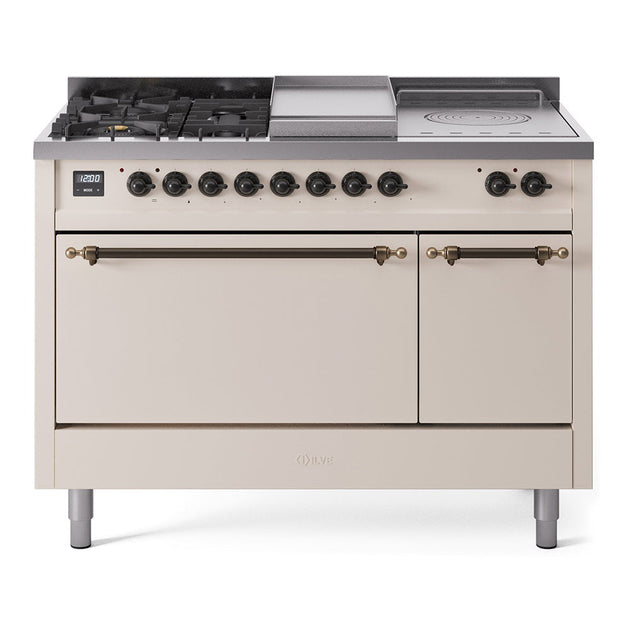 ILVE Nostalgie II 48" Dual Fuel Range with 5 Sealed Burners + Griddle + French Top Solid Door - UP48FSQNMP