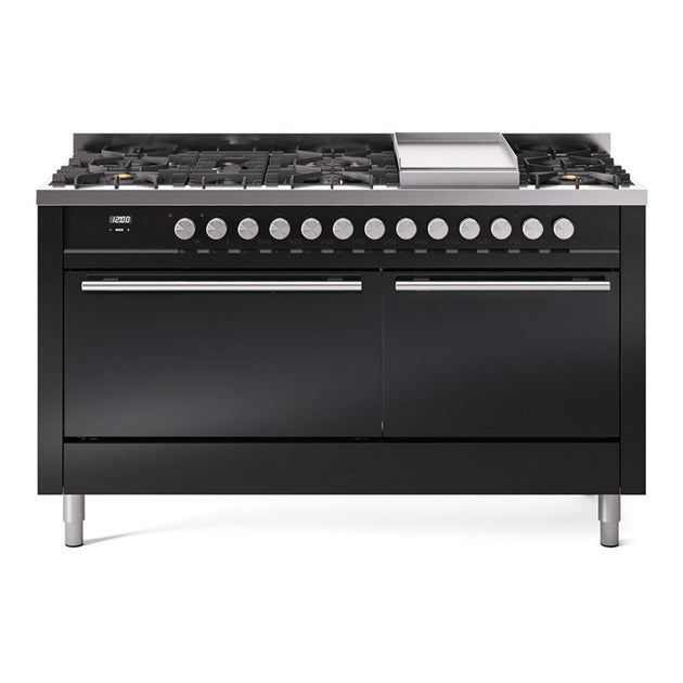 ILVE Professional Plus 60" Dual Fuel Range with 9 Sealed Burners w/Griddle Triple Glass Door - UP60FWMP