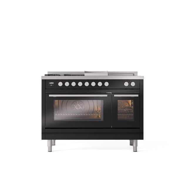 ILVE Professional Plus II 48" Dual Fuel Range with 5 Sealed Burners Griddle French Top Triple Glass Door - UP48FSWMP