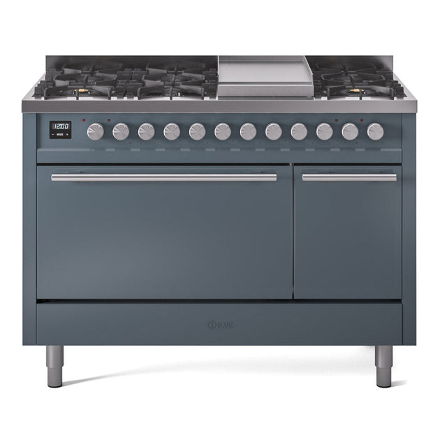 ILVE Nostalgie II 48" Dual Fuel Range with 8 Sealed Burners + Griddle Solid Door - UP48FQNMP