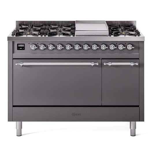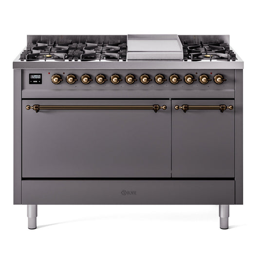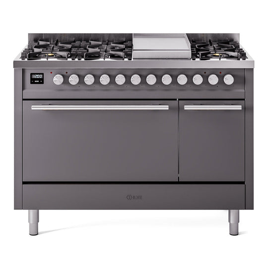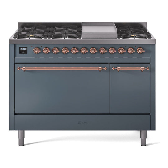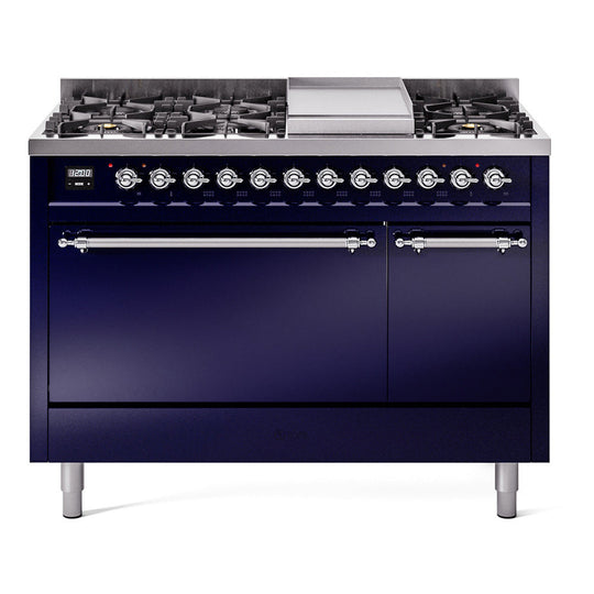 ILVE Nostalgie II 48" Dual Fuel Range with 8 Sealed Burners + Griddle Solid Door - UP48FQNMP