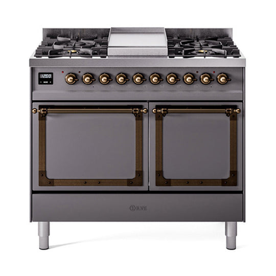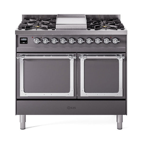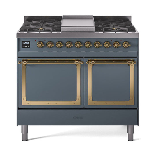 ILVE Nostalgie II Noblesse 40″ Dual Fuel Freestanding Range 6 Sealed Burners + Griddle with Solid Door - UND40FQNMP