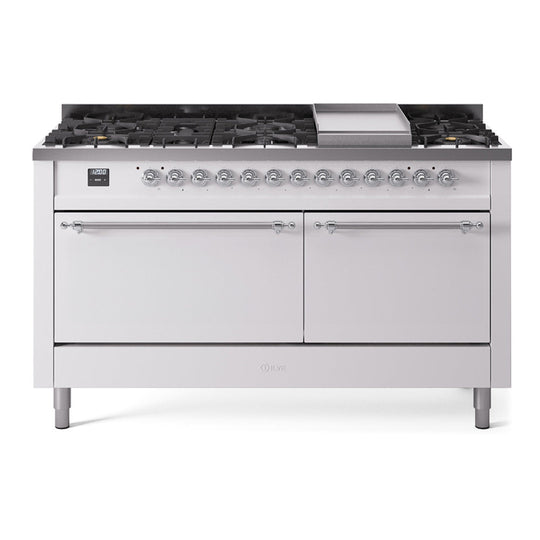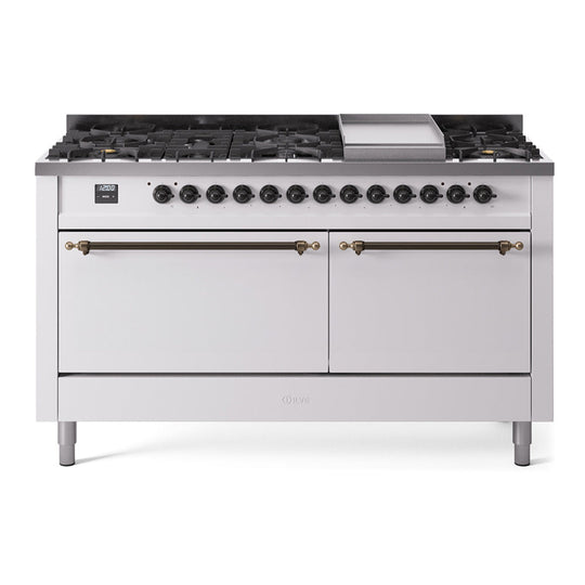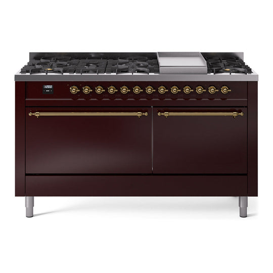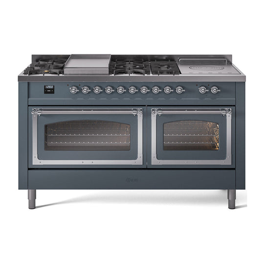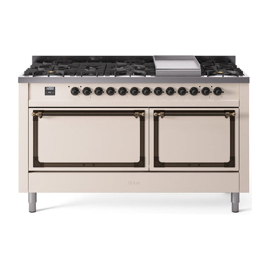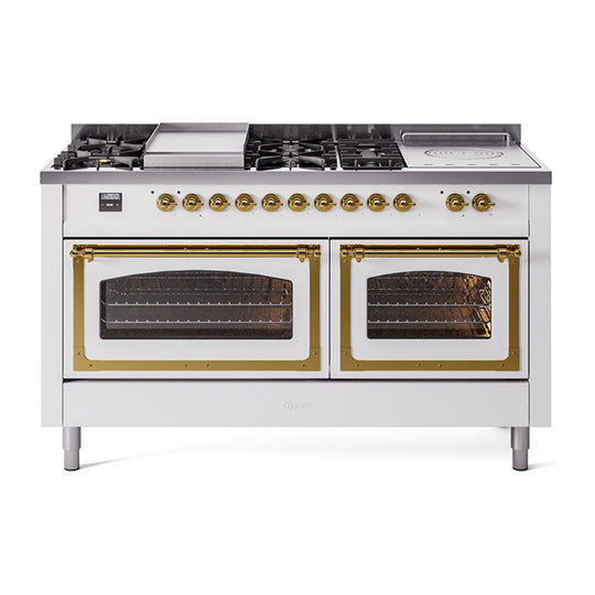 ILVE Nostalgie II Noblesse 60″ Dual Fuel Freestanding Range 9 Sealed Burners + Griddle with Solid Door - UN60FQNMP