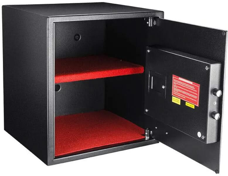 The safe is equipped with pre-drilled anchor holes in the back and bottom, allowing you to securely bolt it to the wall or floor.