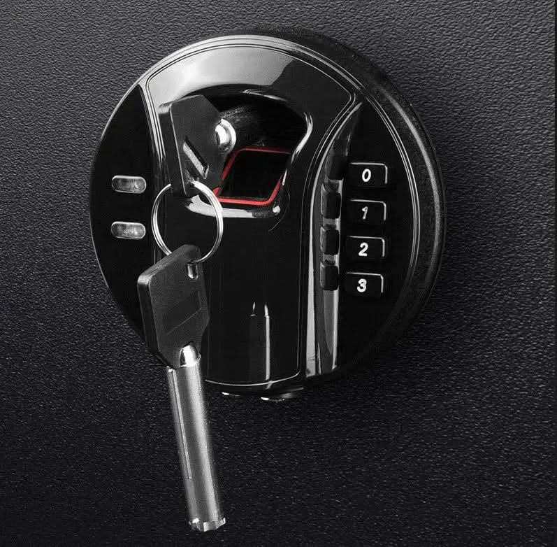 You can access the safe with a fingerprint scan, PIN code on the keypad, or manual key, providing quick and easy access to your valuables.