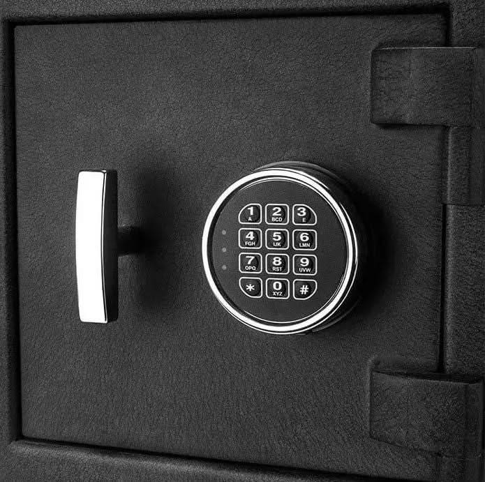 • Override key lock hidden behind the keypad (The key lock allows you to bypass the electronics and open the safe door with the key alone. Two high-security skeleton keys are included)