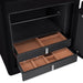 The safe features two meticulously crafted, suede-lined drawers with compartments for various jewelry types, adding an aura of grace while keeping your pieces organized. An added removable glass shelf provides extra storage or display space.