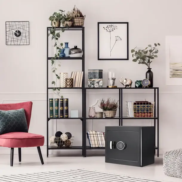 Quick, easy access to your valuables is ensured by a digital keypad, complemented by a hidden override key lock with two high-security skeleton keys.