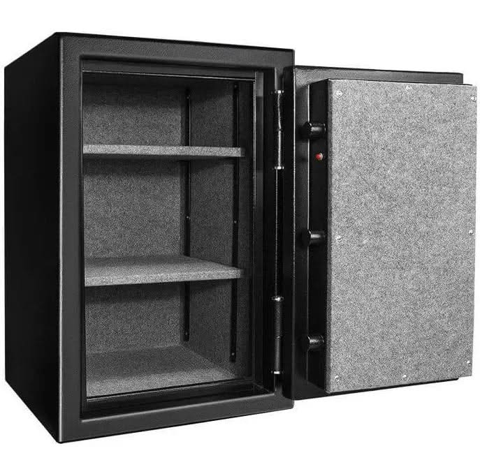 Keep your valuables safe from both burglary and fire with this Large Fire and Burglary Safe. It features a digital keypad for quick access and a hidden override key lock with two high-security skeleton keys. The safe comes with two adjustable/removable shelves, and predrilled anchor holes in the bottom for optional bolting to the floor. Whether you need to protect important documents, jewelry, or other valuables, this safe is a great solution.