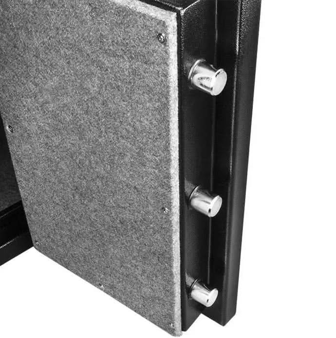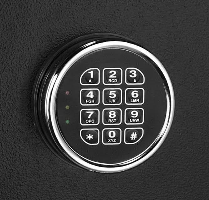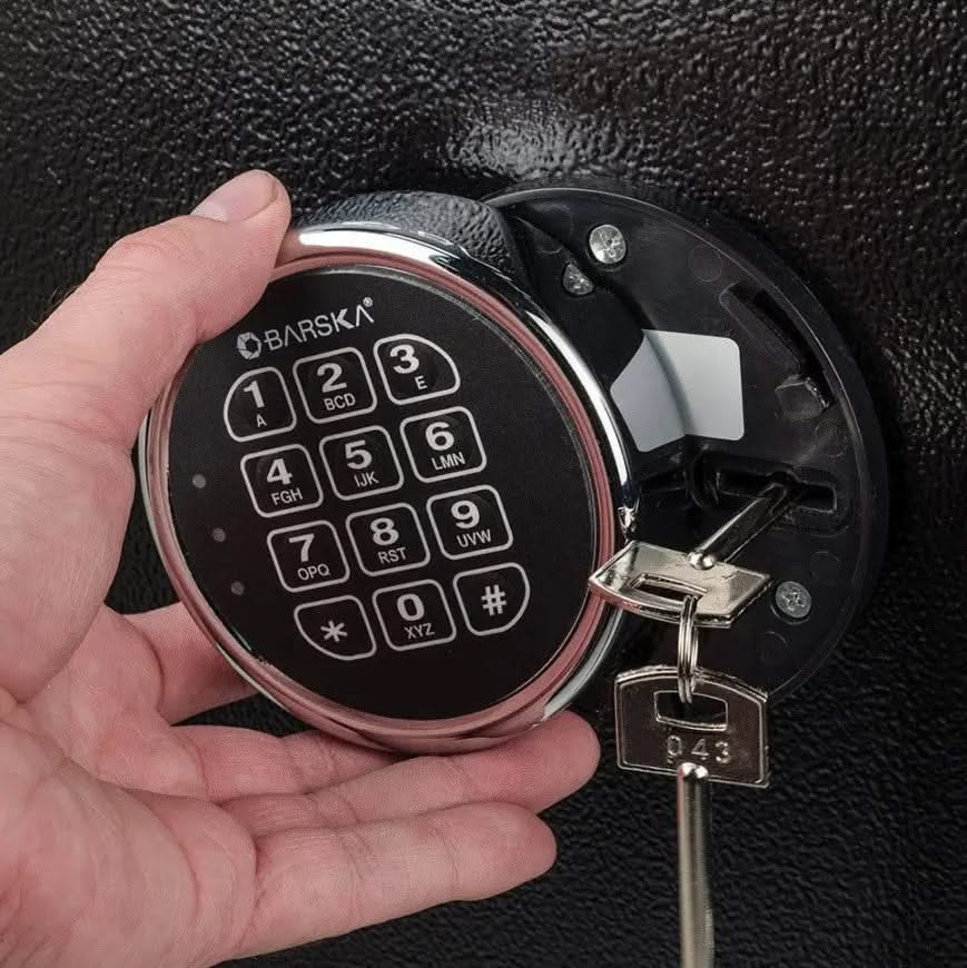 • Override key lock hidden behind the keypad (The key lock allows you to bypass the electronics and open the safe door with the key alone. Two high-security skeleton keys are included)