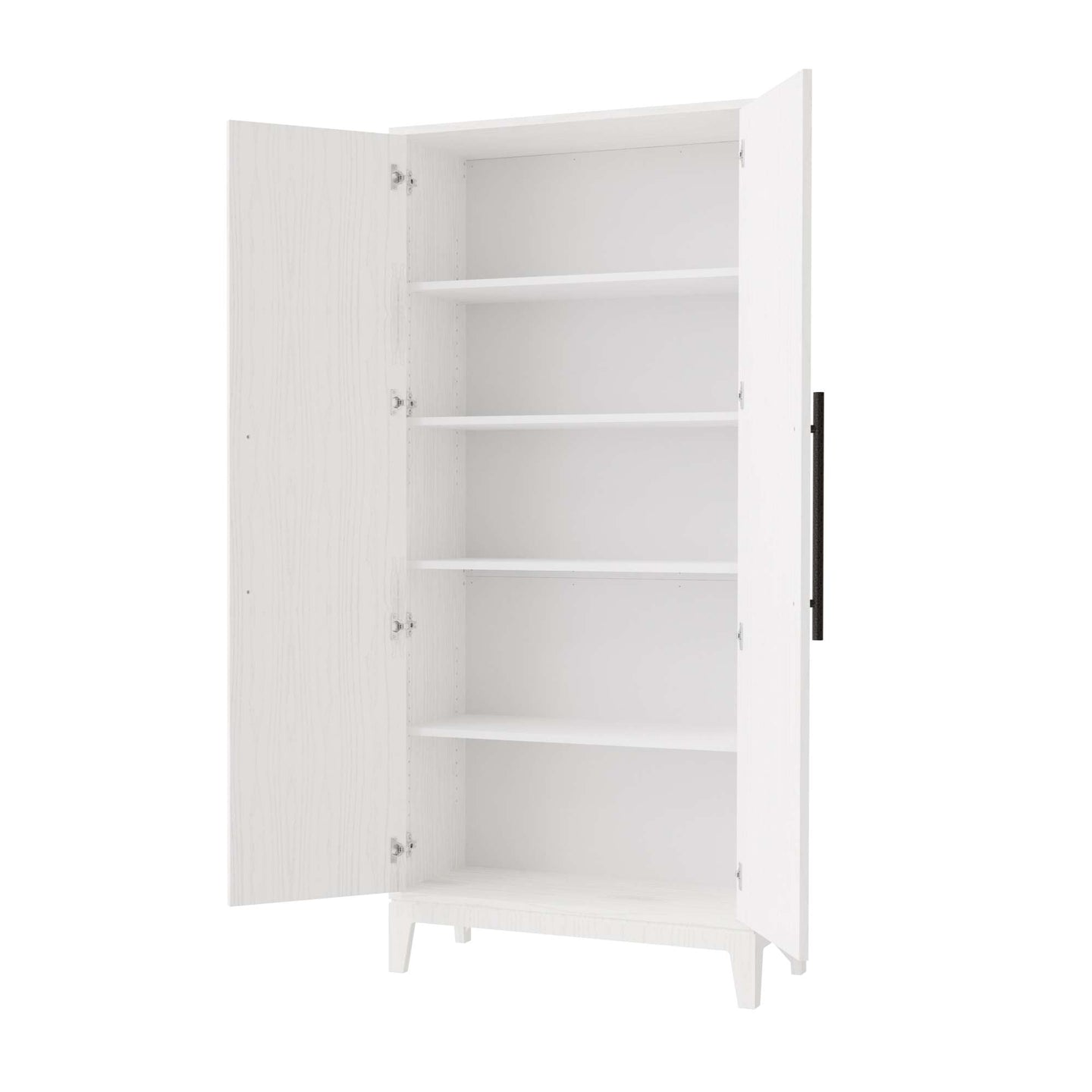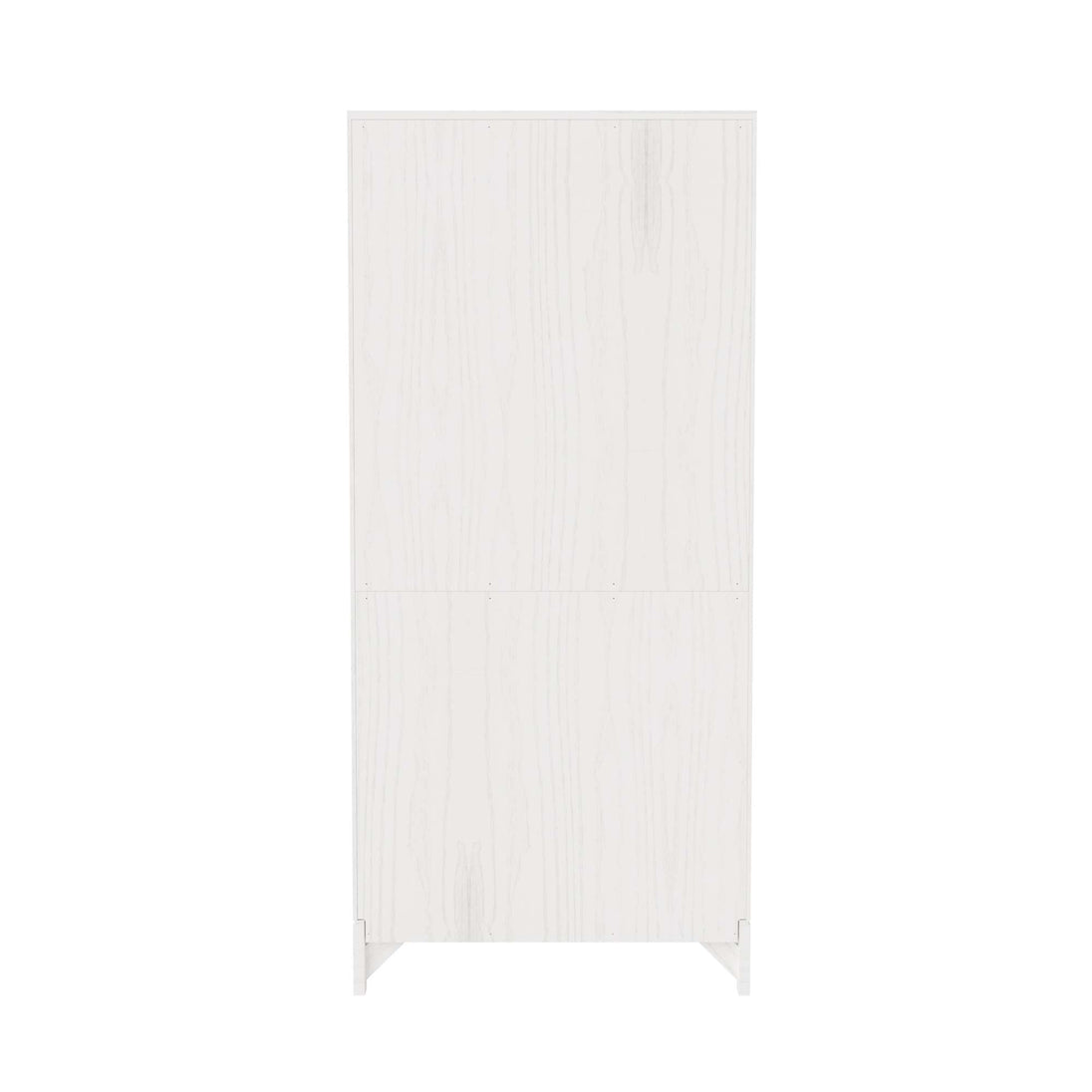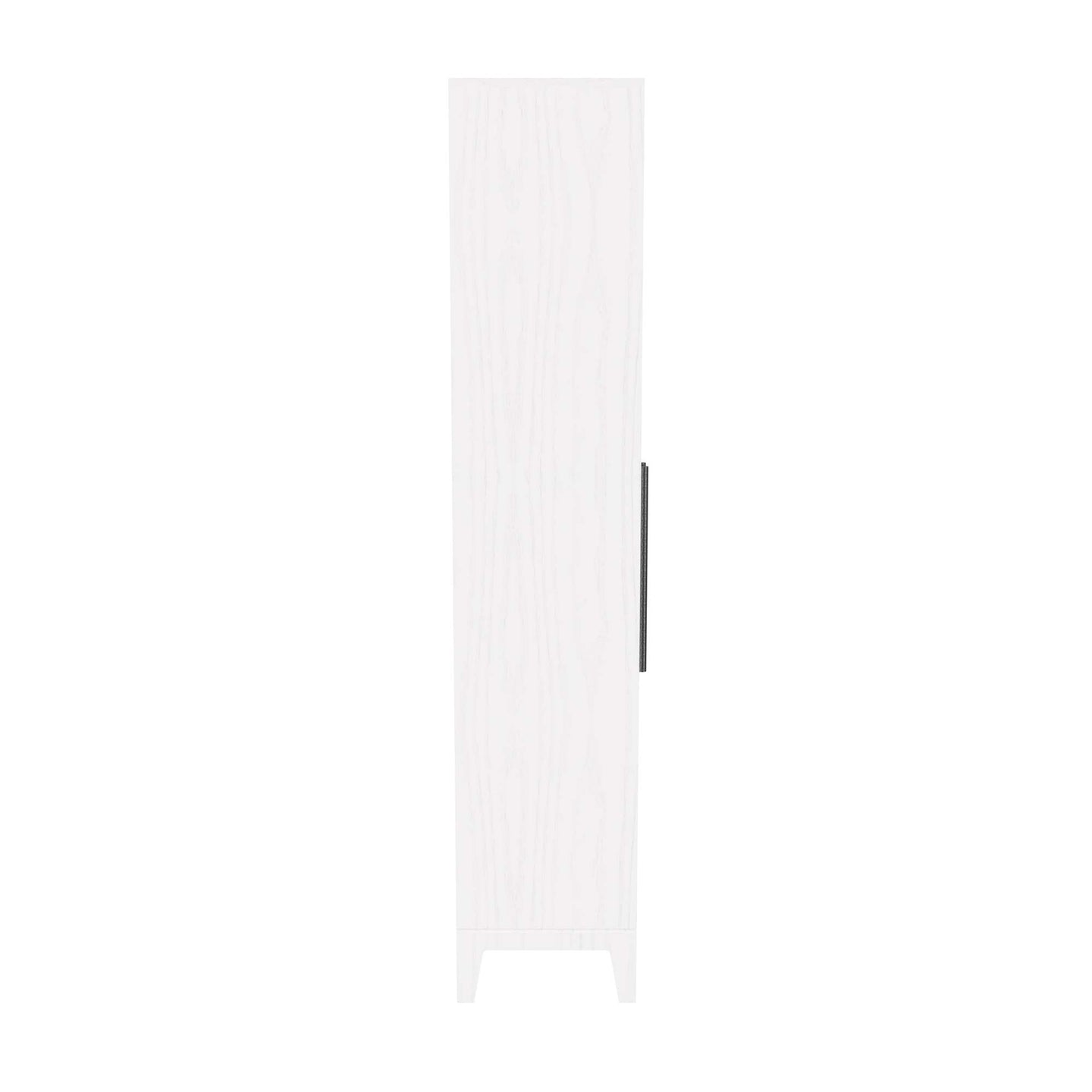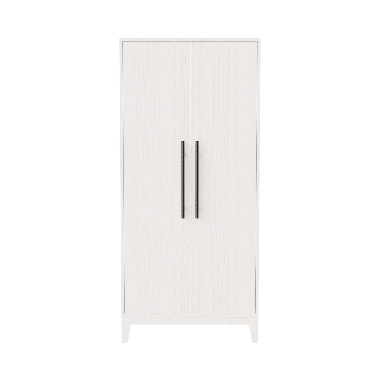 Equipped with three adjustable wood-finished shelves and one fixed shelf, the Millie II offers versatile storage options to suit your organizational needs. The white finished shelves and back panel provide a clean and airy aesthetic, while two full-height wood-finished doors offer easy access to your belongings.