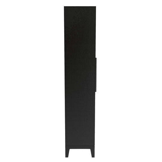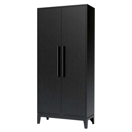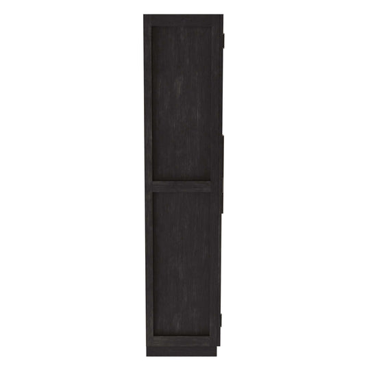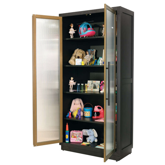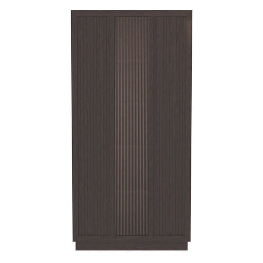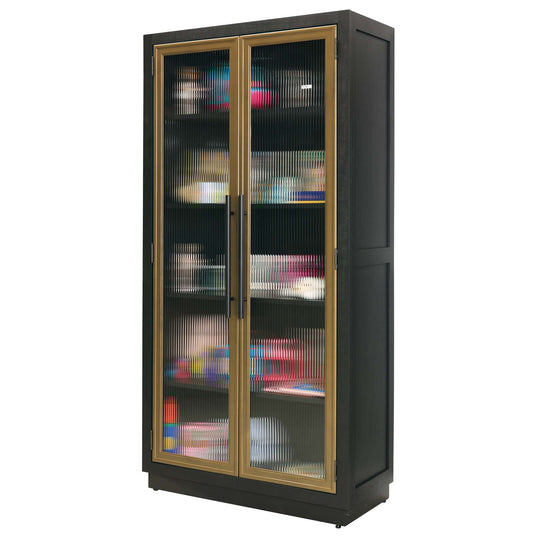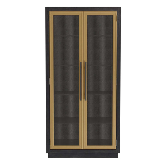 Ebony Oak with matching finished shelves. Made from select solids and veneers. Three adjustable and one fixed composite shelves. Sliding door with center inset reeded glass and outer tambour appearance. Floor levelers.Sale price $2,599.00Regular price $3,337.00Sale price $2,599.00Regular price $3,337.00 -
