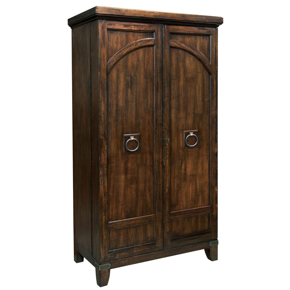 WINE & BAR CABINET: This Rogue Valley Cabinet has a rustic hardwood finish on select hardwoods and veneers for an aged and distressed appearance. A locking door adds additional security and adjustable floor levelers provide stability.
