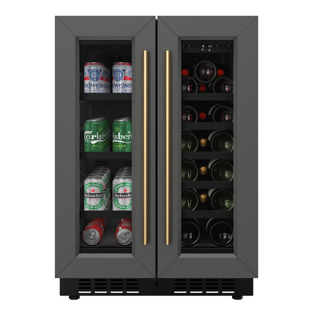 KoolMore Reserve 24 in. French Door Dual Zone Panel Ready Under-Counter Cooler with Black Shelves and 20 Bottle Capacity in the Right Zone and 2.1 Cu. Ft. on the Left in Black (KM-CWB24-BPR)