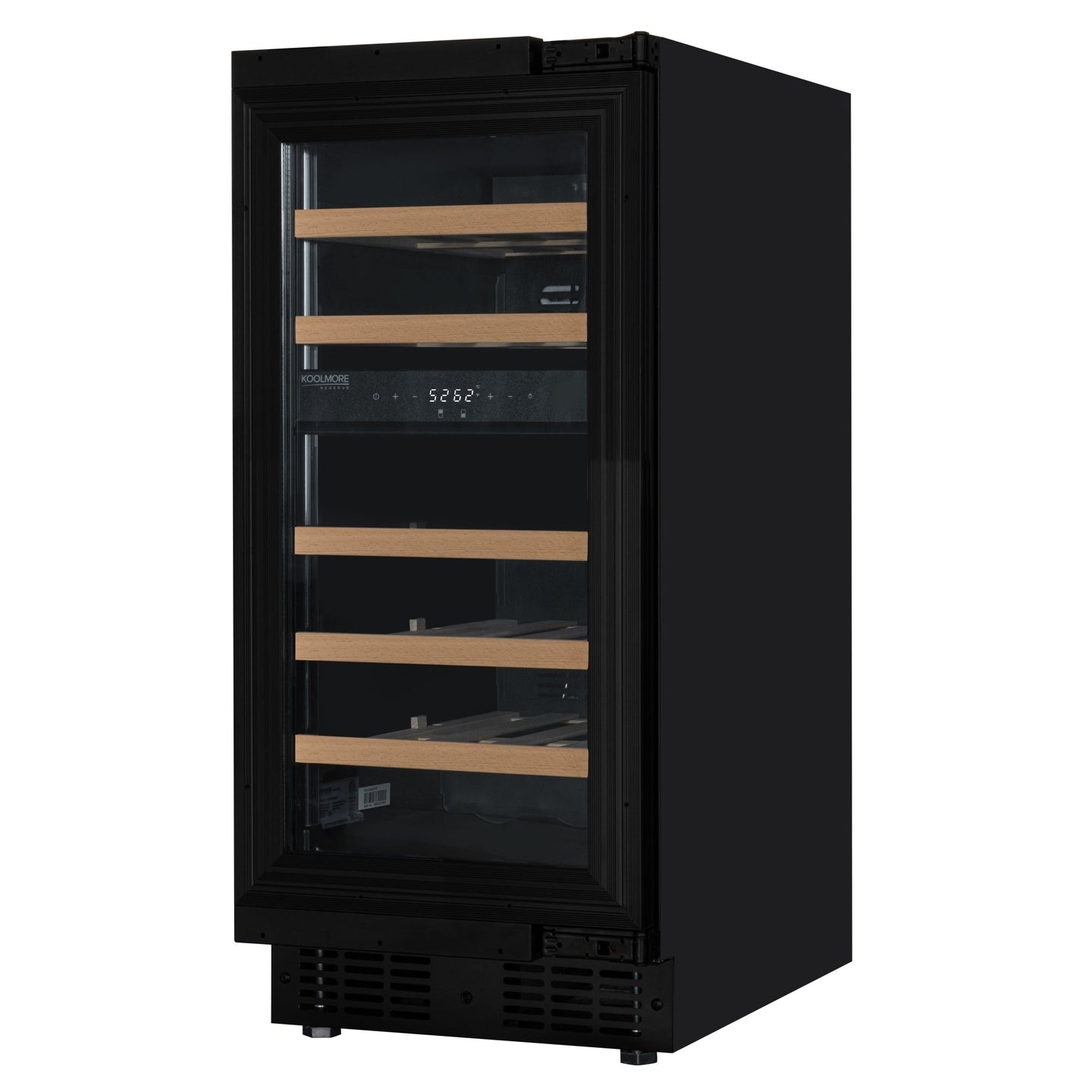 KoolMore Reserve 15 in. Under-Counter Panel Ready Dual Zone Built-in Wine Cooler with 23 Bottle Capacity and Wooden Shelves in Black (KM-CW28DZ-WPR)