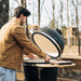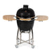 Grill, smoke, and bake on 265 sq. in. of cooking space. This kamado grill is built with a thick ceramic shell to retain heat and moisture for delicious, juicy meats and doubles as a smoker and oven for top-notch pizzas, bread, cookies and more. Reaching up to 800-degrees and holding a steady temperature throughout, this grill is great for quick searing or low-and-slow grilling using the ceramic heat deflector. Equipped with a built-in thermometer and a weather-resistant aluminum top vent, precise temperature and airflow control is a breeze - and the hinged grate makes for easy charcoal refills mid-cook. Plus, an ash drawer and stainless-steel ash tool make cleanup quick and easy. This set comes complete with a grill grate, charcoal plate, clip tool, protective drawstring cover, and a stainless steel stand with locking caster wheels to keep your Kamado steady while you cook.