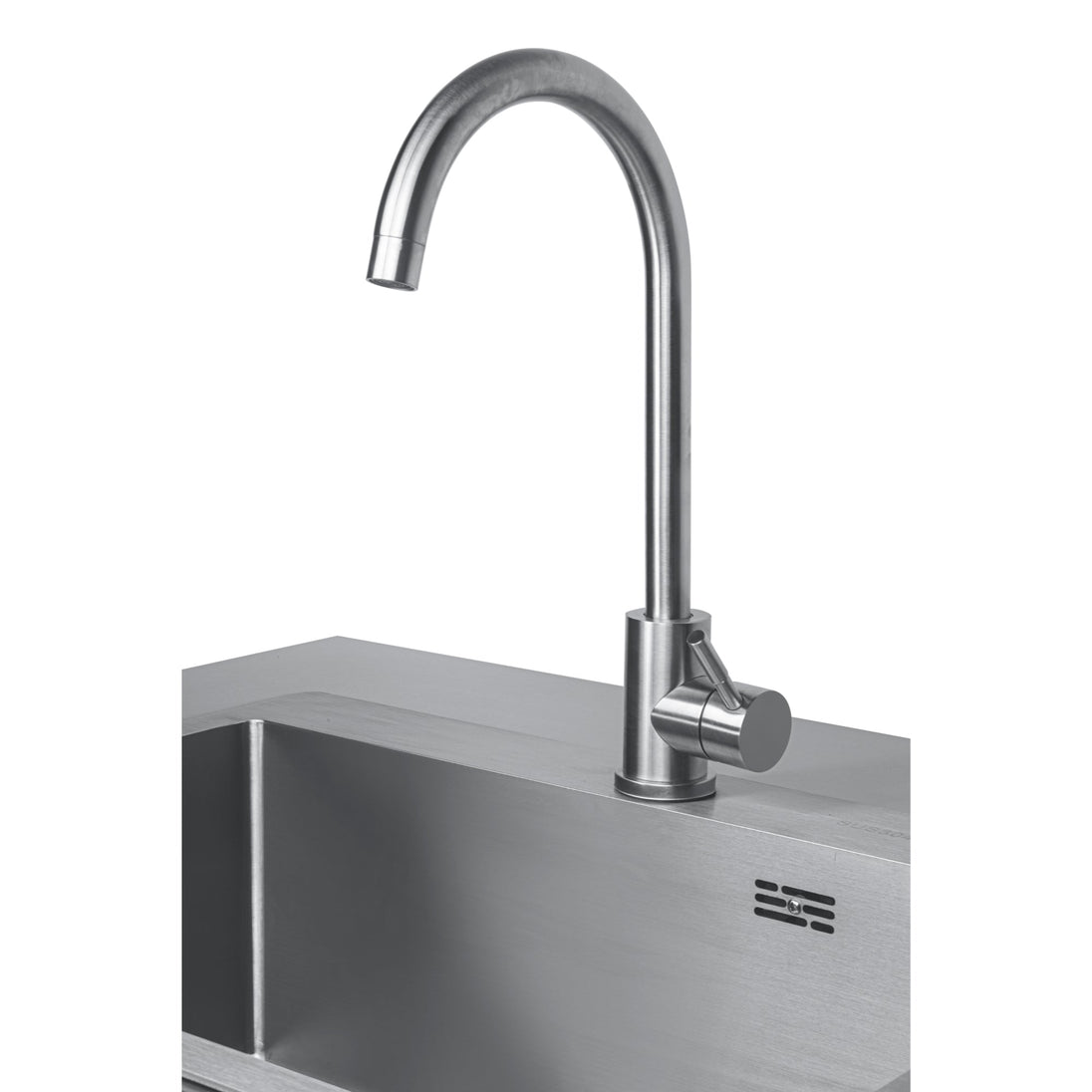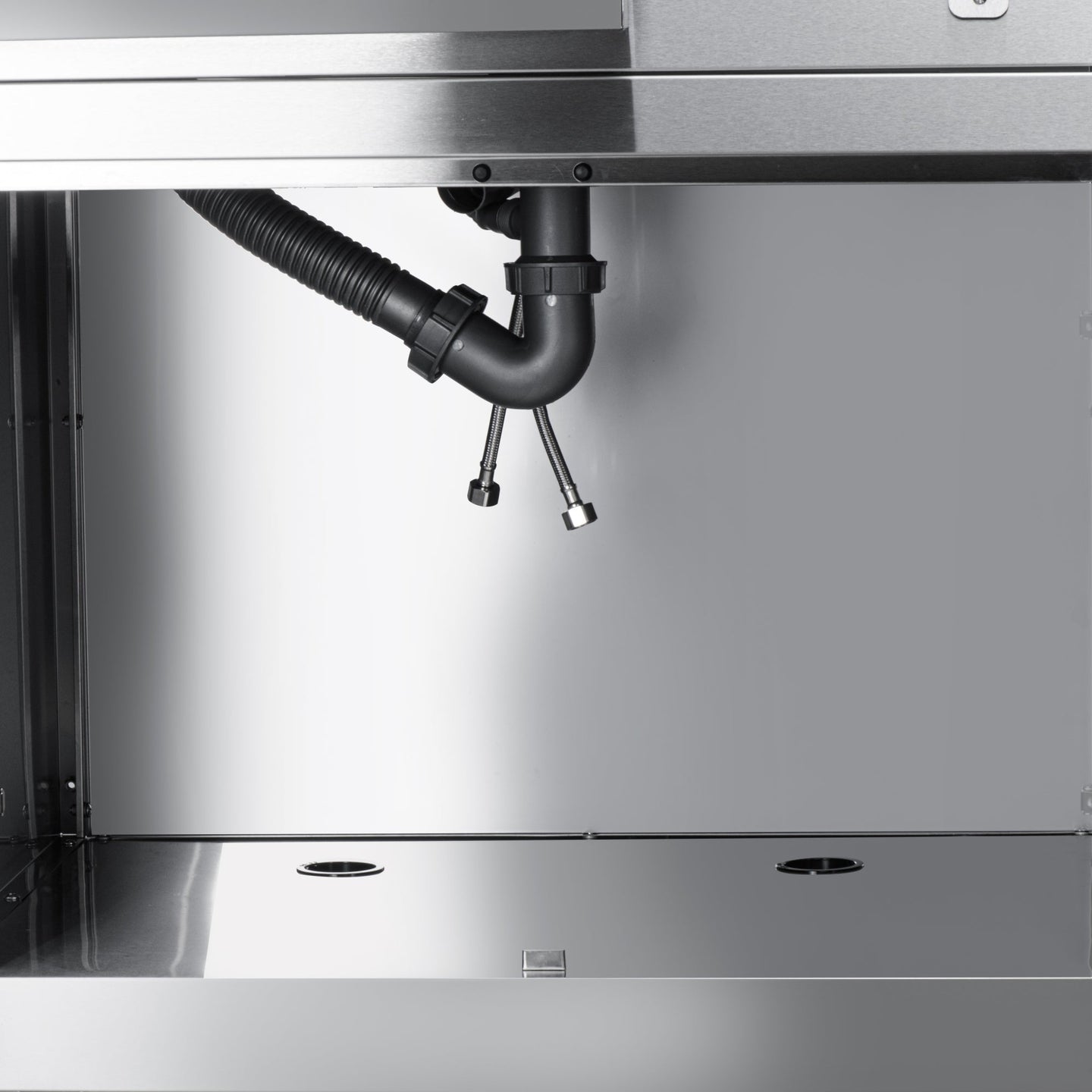 Crafted from premium stainless steel, this outdoor sink and cabinet duo are built to withstand the elements, promising resilience against rust and corrosion, ensuring long-lasting performance in any weather.