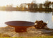 Fire Pit Art Asia 48" is constructed from heavy-duty 1/4"-thick mild carbon steel, producing a long-lasting and durable fire pit. The inner bowl has a high-temperature-resistant coating and a rain drain with a diameter of 1 ½".The outer iron oxide patina is maintenance-free, and the fire pit can be left outside in all weather conditions. A numbered brass plate on the base of the fire pit showcases a unique number, signifying it has been handmade exclusively for you.