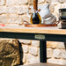 Available in an all-Teak frame or with black aluminum legs and a teak tabletop.