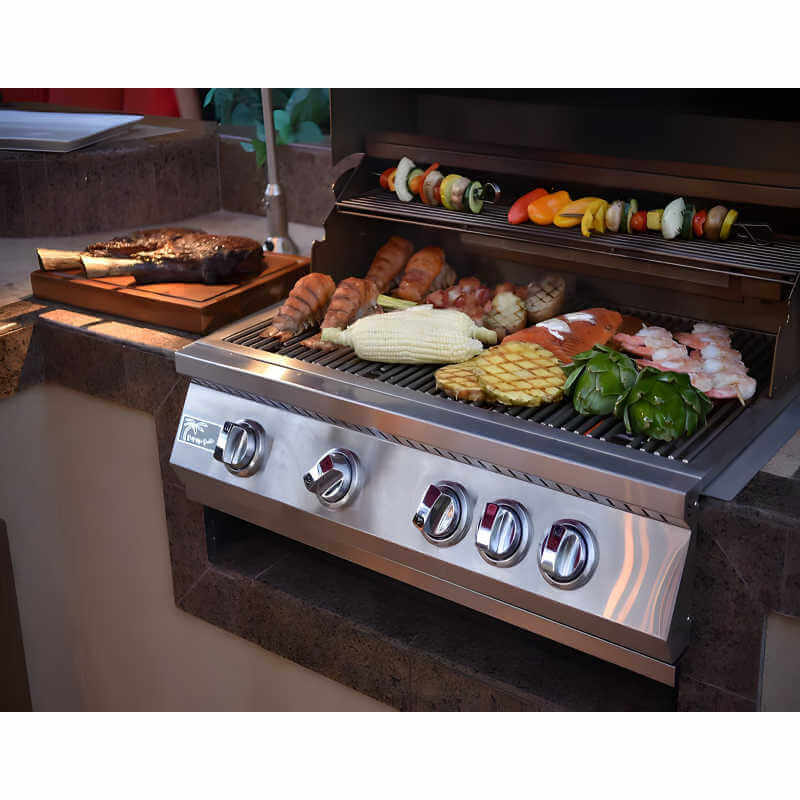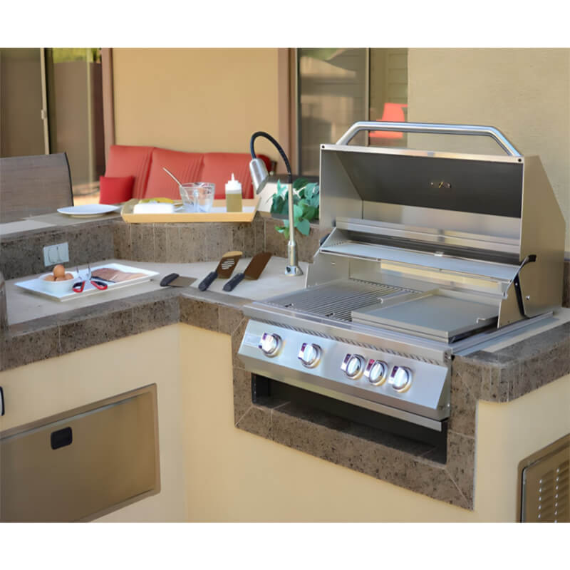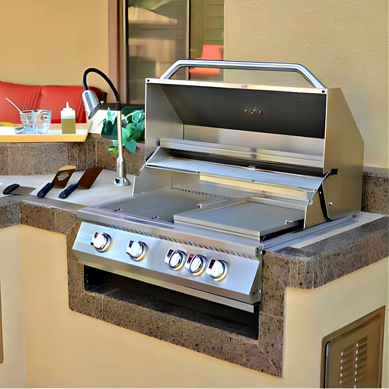 The Kokomo Grills 32-Inch 4-Burner Built-In Gas Grill delivers professional-grade cooking power, even heat distribution, and long-lasting performance for premium outdoor kitchens. Constructed entirely from 304 stainless steel, this grill is built to resist corrosion, maintain its finish, and endure harsh outdoor conditions.