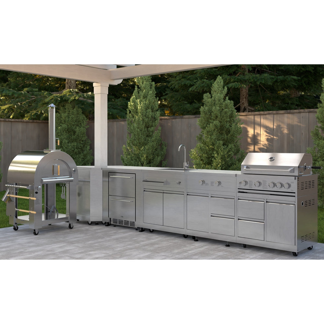 KoolMore Outdoor Kitchen Series Modular Kitchen with a Dual Fuel Pizza Oven, Corner Cabinet, Refrigerator and Cabinet, Sink, Side Burner and 30 in. BBQ Grill with Cabinet in Stainless-Steel.