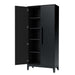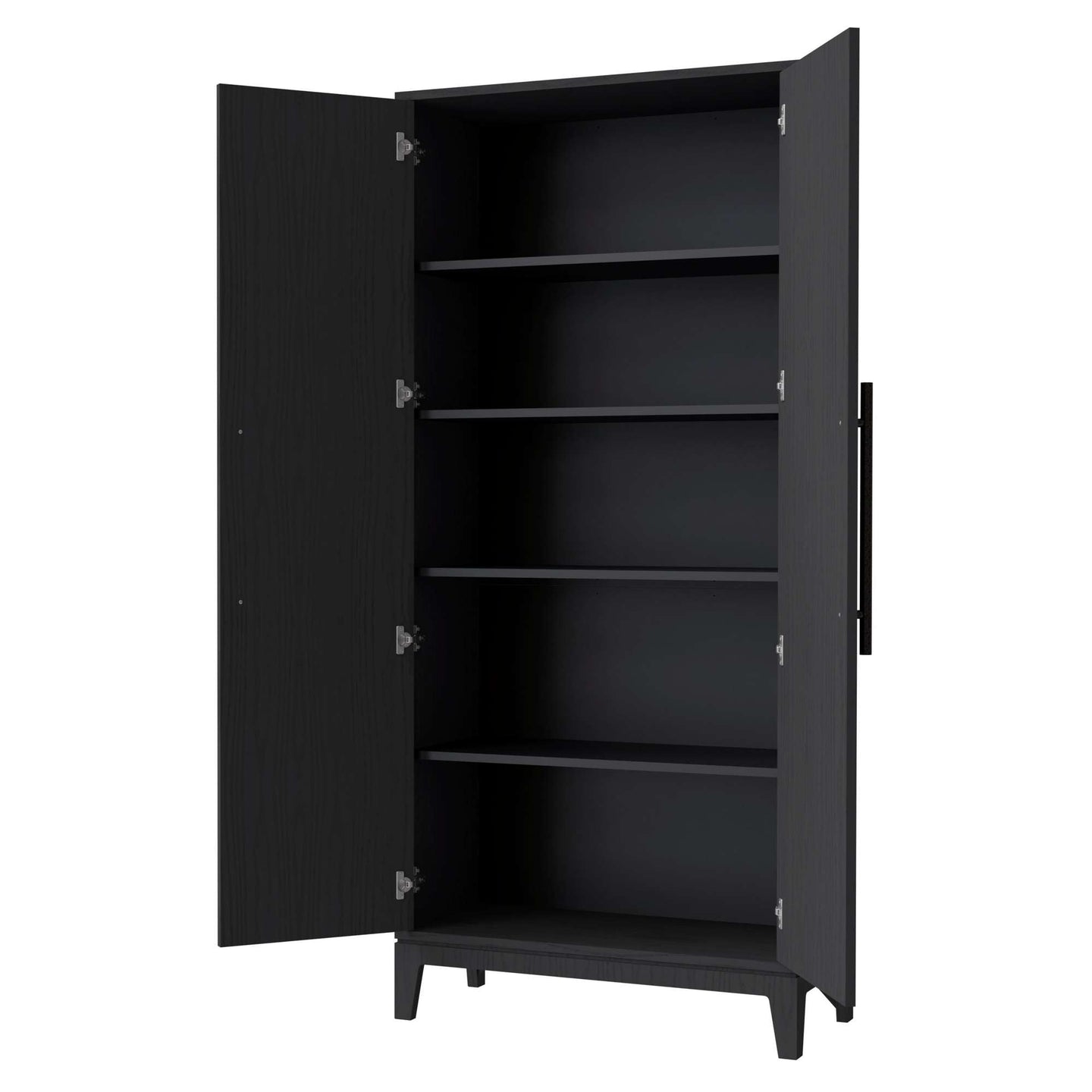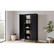 The cabinet's black finished shelves and back panel add a contemporary touch, while adjustable floor levelers ensure stability on any surface. With its versatile design and sleek aesthetic, the Millie Storage Cabinet is the perfect addition to any home or office space, providing both style and functionality in one elegant package.